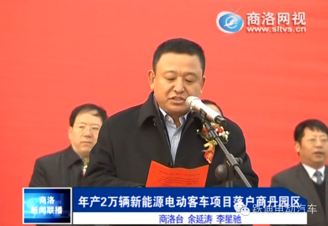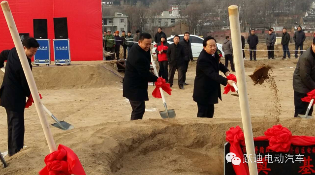 2015年2月7日上午,跃迪集团总投资15亿元,年产2万辆新能源电动客车整装生产线项目开工奠基仪式在陕西商洛市商丹循环工业经济园区成功举行。市委书记胡润泽出席并宣布项目开工。市人大常委会主任何铁虎,市委副书记张普庆,市委常委张荣珠、黄思光、高键等政府领导,跃迪集团董事长吕洪涛,总经理雷明环,项目总监梁计刚,商洛项目经理张国庆等公司领导出席开工奠基仪式。市长陈俊、跃迪集团董事长吕洪涛分别讲话。副市长王勇主持本次开工奠基仪式。