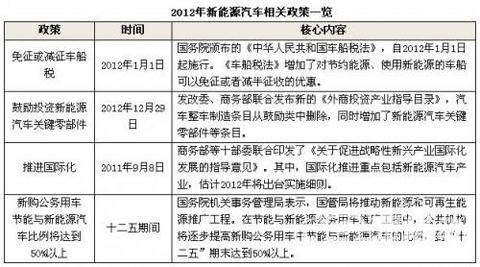 此外,其他新能源汽车相关政策正待出台,如《节能与新能源汽车产业发展规划(2011~2020年)》预计将会在2012年出台。
