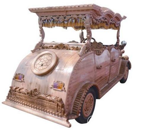 9月3日,一辆由一名木匠制作的木制电动汽车出现在亚欧博览会的现场。你可别小瞧它,该辆木制电动汽车时速可以达到50公里。