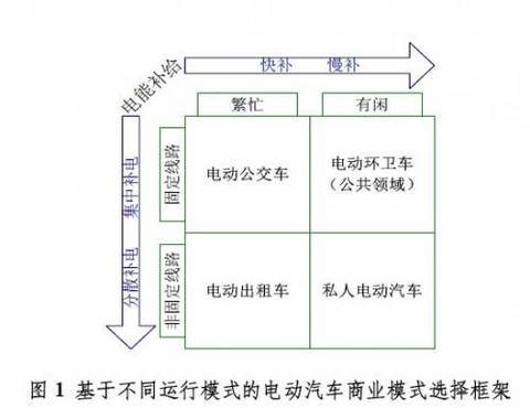 下图提供了一种按照车辆运行模式进行电动汽车商业模式选择的模型框架。