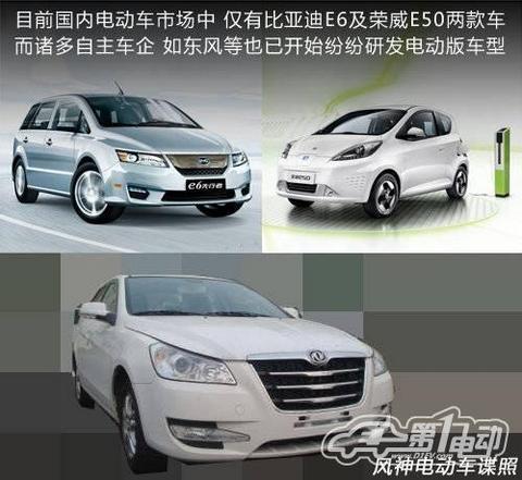 目前市场上在售的电动车型屈指可数,仅有比亚迪E6和荣威E50两款车型,尚无其他电动车型推出。这一市场目前尚处于十分匮乏的状态,而随着未来车企的发展规划以及政府的出资扶持,目前国内诸多自主车企也正在研发并推出旗下的纯电动车型,如东风等车企便是如此。