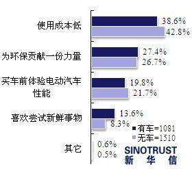 从有车族和无车族的差异来看,无车族比有车族更看重使用成本;而抱着”尝试新鲜事物”的态度来租赁电动汽车的被访者中,有车族则多于无车族。