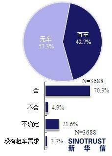 图1、车辆拥有情况及对电动汽车的租赁意向