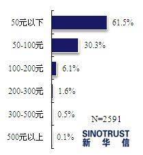 那么,参与此次调查的被访者能够接受电动汽车的日租费用是多少?本次调查结果显示,六成以上被访者希望日租费用在50元以内,三成希望在50~100元之间。 (见图3)
