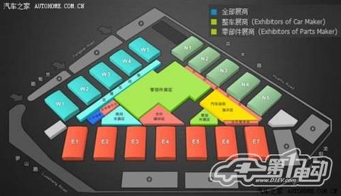 车展将使用上海新国际博览中心全部17个室内展馆(2011年为13个),以及室外临时展馆和室外场地。其中,乘用车13个馆(W1——W5,E1——E7及N1),比上届增加2个馆;商用车展区为N2馆一半及部分室外展区;汽车零部件展区为N2馆一半、N3、N4、N5馆以及室外20个临时展馆。
