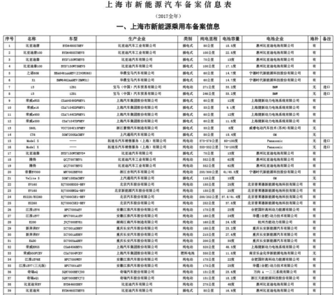 上海发布2017年新能源汽车备案信息,155款新能源汽车入选
