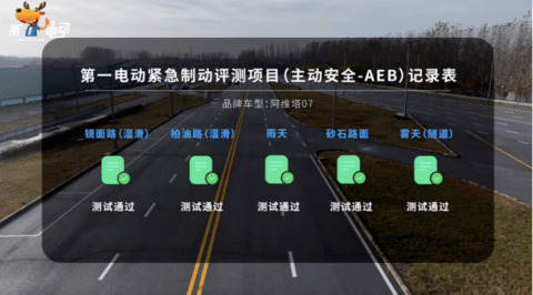 带着这一核心疑问,我们和新出行约定分别进行一场针对性的测试。我们将2026款阿维塔07驶入北京智能网联汽车测试基地,针对性设置镜面路、湿滑柏油路、雨天、砂石路、雾天隧道五大高危驾驶场景,开展真实、严苛的AEB极限测试,全面验证其在复杂路况下的主动安全性能。